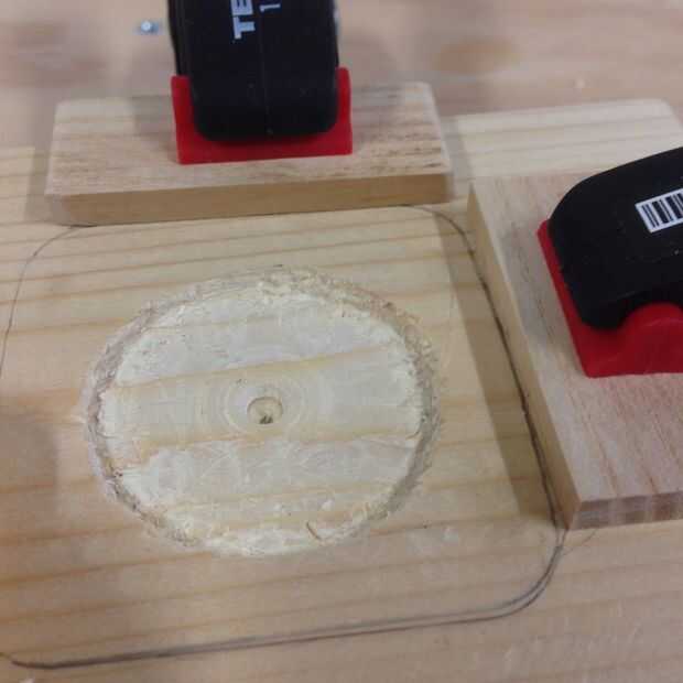 1. Toma tus dos piezas de madera de desecho y línea hasta las líneas trazadas en el exterior