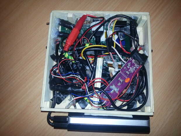 En primer lugar cortar uno aparte del USB cables micro usb y tira de ambos extremos del cable. Debe tener un rojo y un cable negro dentro y tal vez un blanco y un verde. Cortar el blanco y los verdes. Ahora, suelde el cable negro del cable con el extremo micro usb junto con el cable negro de la pantalla y el cable negro del cable con el extremo del conector usb. Luego suelde el cable rojo del cable con el extremo micro usb con el cable rojo de la pantalla y un nuevo cable (no importa de qué color). Y ahora, suelde el cable rojo del cable con el extremo del conector usb con un cable nuevo. Después de la soldadura de los dos cables nuevos en el interruptor de encendido/apagado. Ahora corte el extremo de la entrada de vídeo de la pantalla. Luego suelde el cable interno de cable (o el negro Si hay un cable negro y un cable amarillo en él) al delantero pin del conector RCA de la frambuesa pi y la soldadura de los cables no aislados externos (o el amarillo) con el conector del lado del conector RCA de la frambuesa pi. Ahora aislar todos los empalmes de la soldadura con cinta aislante. Después de eso prueba si funciona. Si el led rojo de la frambuesa pi brilla y la pantalla no funciona, compruebe si la pantalla está conectada a una fuente de energía. Si la pantalla no muestra nada, cambiar el lado y el frente soldado los cables en el conector RCA de la frambuesa pi, para que el alambre de lado está en la parte delantera y el alambre frontal en el lado.