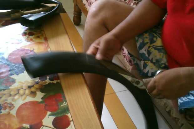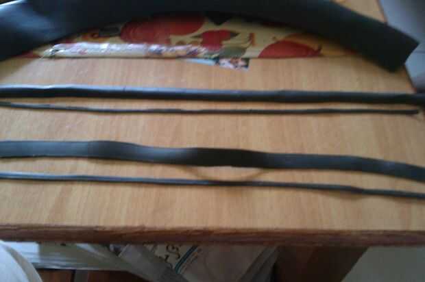 Primer paso : cortar las tiras de goma como se muestra en las fotos.