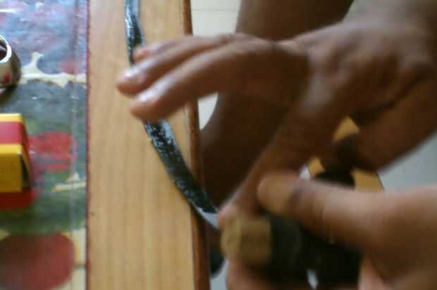Tercera p ste: después inding w encima las tiras de goma alrededor de la estructura básica, pegar los extremos de las tiras de goma con un adhesivo de caucho. Sería una solución temporal.