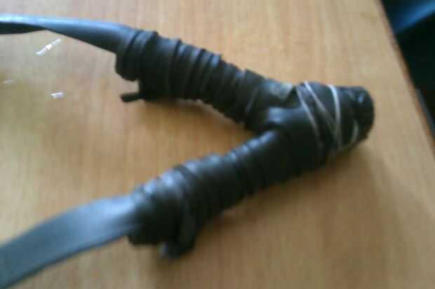 Luego del viento las estrechas alrededor de los grandes, uno por uno. Asegúrese de lo que ha atado correctamente, para que cuando usted estira la goma, no se rompió hacia abajo. Cortar el extra.