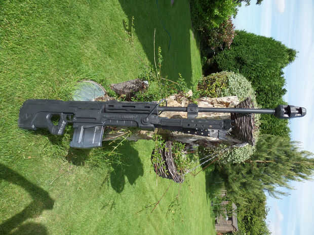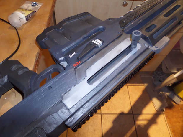 Todo, dar un par de capas con imprimación gris y aerosol la revista por separado. El rifle utiliza 5 diferentes tonos de gris que puede lograrse utilizando solamente combinaciones de blanco y negro y uno que necesita una buena cantidad de la adición de azul. Los otros colores que necesitará son amarillo, rojo y plata (rojo para el selector de "Fuego" y para agregar a la franja amarilla para hacer el color más naranja).