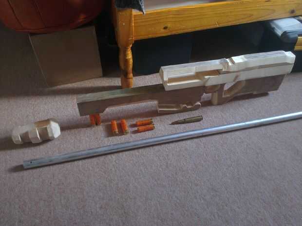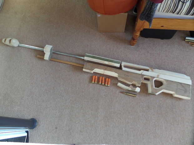 Para la clarificación, la parte inferior del cuerpo es la parte incluyendo el forestock, agarre y butte. La parte superior del cuerpo es lo que el ámbito de aplicación se monta en, y el cuerpo medio se ajusta entre los dos. La combinación del barril (no podía pensar en el nombre correcto) conecta el cañón en el tubo por debajo de ella.