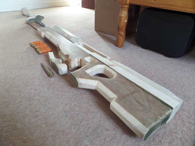 Las dimensiones que utilicé para la parte inferior del cuerpo del rifle fueron:
