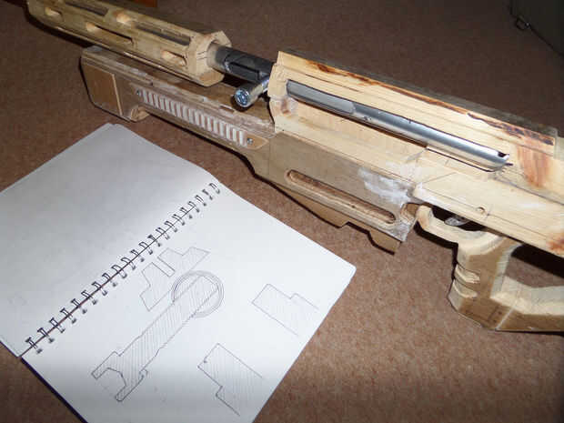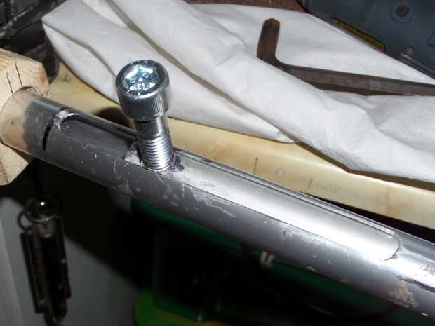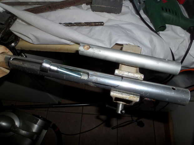 Retire el tubo interior. seguir perforar agujeros a lo largo de la línea entonces el archivo de las brechas de distancia y después de algún trabajo tendrás un agujero oval largo 16cm. Una fresadora cortar una ranura limpia, pero estaba limitado a ejercicios y archivos. Limpiar las virutas de metal, vuelva a insertar el tubo interior y rosca el tornillo en el orificio hecho en el tubo interior y el mecanismo de chambering debe ser completa.