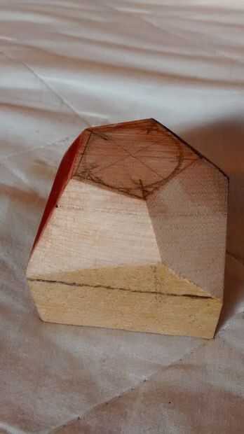 - Dibujar el Pentágono segundo en el lado opuesto del bloque. Debido a las líneas que trazaste en el paso anterior, el Pentágono será exactamente Pentágono de offset el primero.