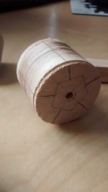 - Tomar el cilindro de 2 pulgadas y trazar una línea media alrededor de la circunferencia del bloque.