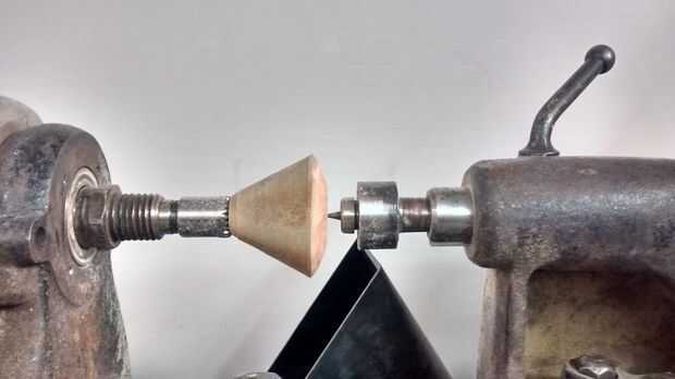 1. Coloque uno de los bloques en su torno de madera, asegúrese de alinear las marcas de centro con el torno para que el cilindro es recto y en su lugar.