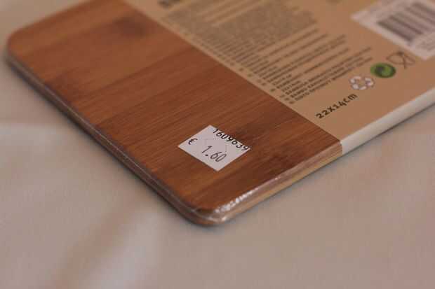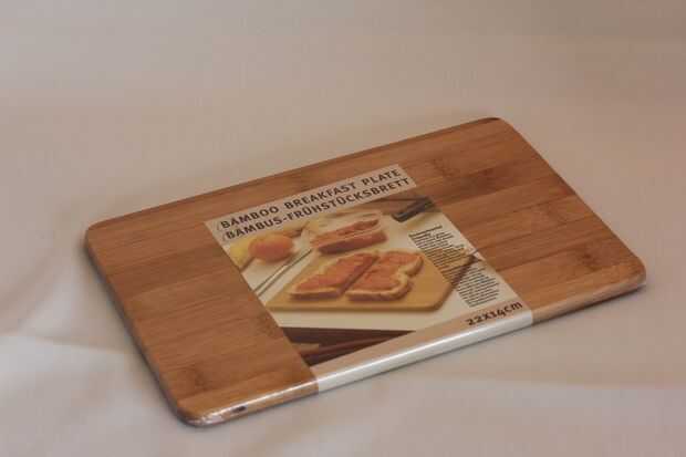 1. Una pieza de madera sólida, preferentemente un buen pedazo de madera tropical. (ya que es un objeto muy pequeño, que esperemos que dure un par de años, es aceptable para pasar alguna madera tropical para él) He usado bambú, como encontré un pedazo de madera bonito y barato en la tienda outlet cerca: 1,60 euros