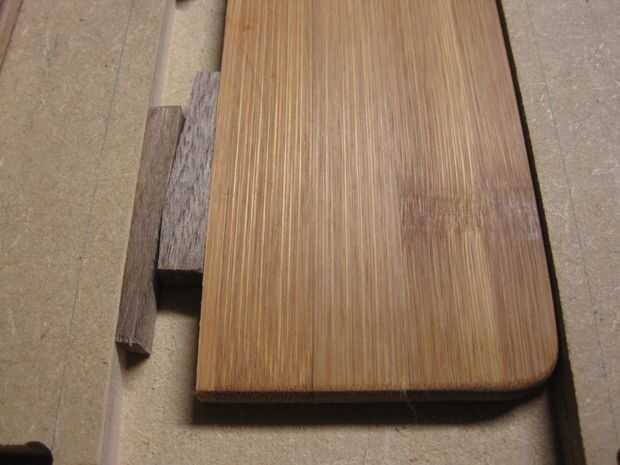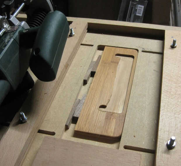 - El bambú en la plantilla de montaje: ver imagen: utilizar pares de cuñas de madera. Asegúrese de que aquellos no se ejecutarán lejos de las vibraciones del router