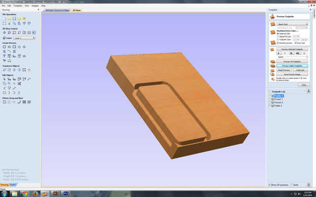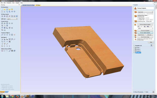 La siguiente fue la trayectoria de herramienta de bolsillo grande para hacer el espacio donde cabría su teléfono, este es el rectángulo redondeado inicial hecho con formas para los botones laterales