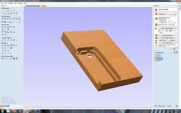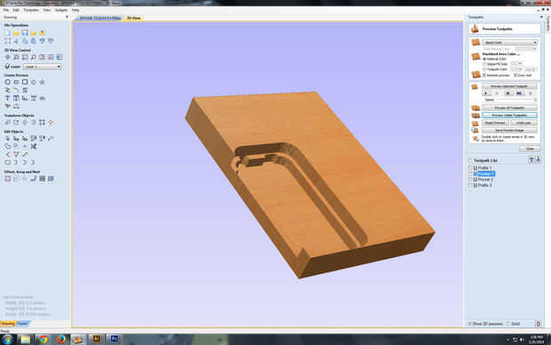 Después de eso hice una segunda trayectoria de herramienta de bolsillo para el orificio que pasó todo el camino con mi madera.