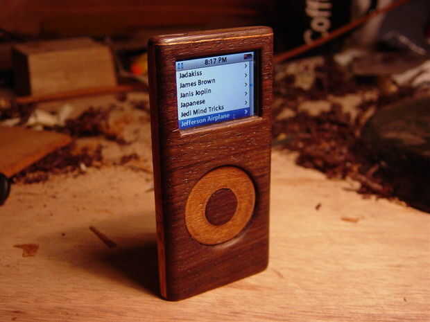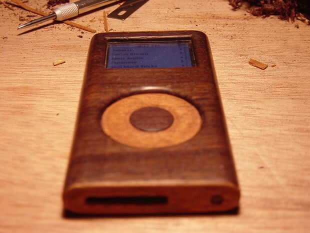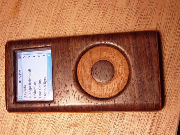 Se hace de eucaliptus flameado y ébano. El disco en este caso se hace del ébano sólido (alrededor de 1mm de espesor) y se siente mucho mejor que la caoba chapa de plástico en la iteración anterior. La pantalla tiene algún filete alrededor de los bordes para que se vea un poco mejor.
