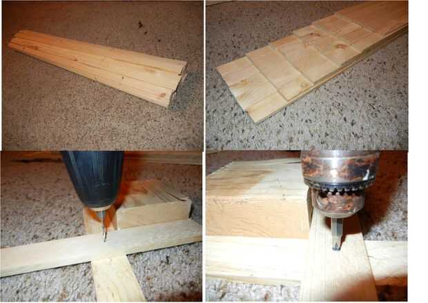 Compra un paquete de madera.  Decido comprar 48 "x1.5"x0.25"Pino debido al bajo coste.  Seleccione 32 piezas rectas y endecha plana.  Usé una broca de diámetro pequeño para pre-taladrar los agujeros y 0.5" longitud tornillos #2 de diámetro para la fijación de la madera.