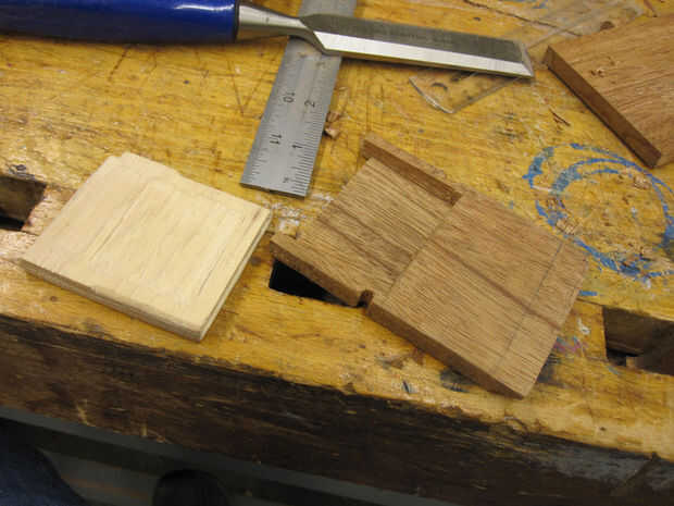 b) ahora presentar los bordes de la paz posterior a un ángulo. Marque con un lápiz la línea que será el final de la diagonal. Con una escofina y archivos, afeitarse los bordes hacia un ángulo. Redondear las esquinas inferiores mientras se les pesca con caña.