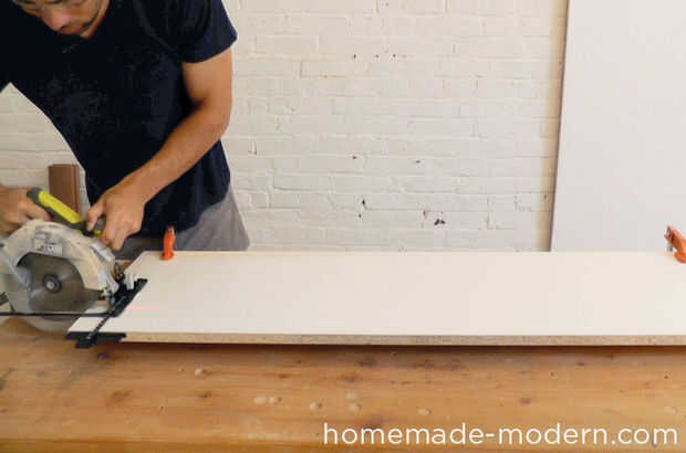 Utilice una sierra circular para cortar tres 2.5" ancho tiras, 4 pies de largo. Yo utiliza el accesorio de guía para mi Sierra RYOBI para obtener agradable, incluso corta.