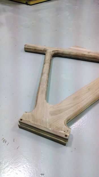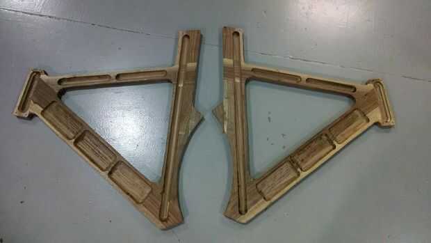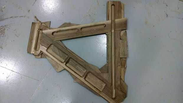 Después de la laminación, esencialmente tiene dos grandes bloques voluminosos de madera laminada y el marco de la bici está escondido dentro. Este paso lo trae hacia fuera.