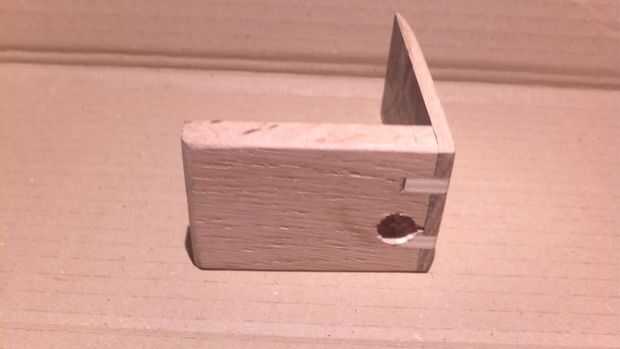 Ho incollato un gradi 90 i due pezzi di legno e gli ho inserito debido tasselli di rinforzo.