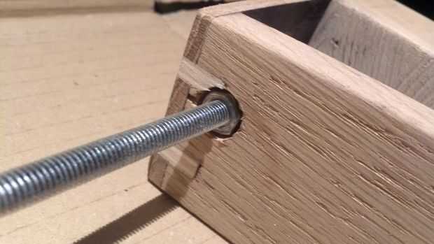 Ho forato vienen da foto por il passaggio della barra filettata e por incastrare il dado sarà poi incollato con colla epossidica.