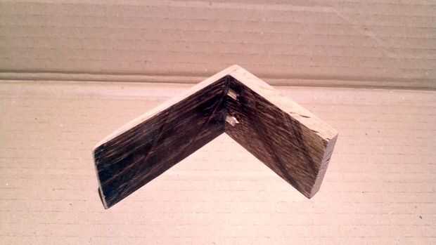 Pegué las dos piezas de madera con unas tiras de refuerzos a 90 grados.