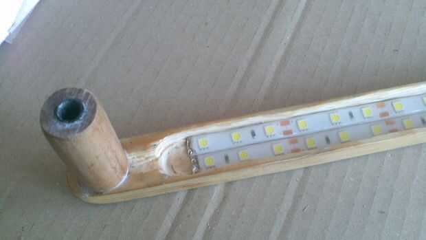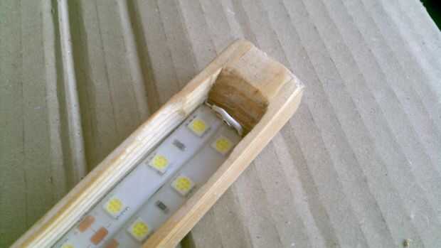 Establecer las franjas led con cinta de doble cara. Al final de la soldadura de lámpara + con + y - con-.