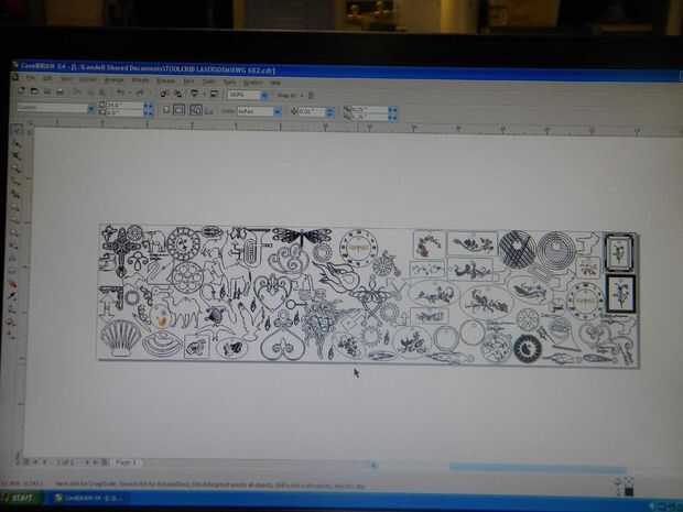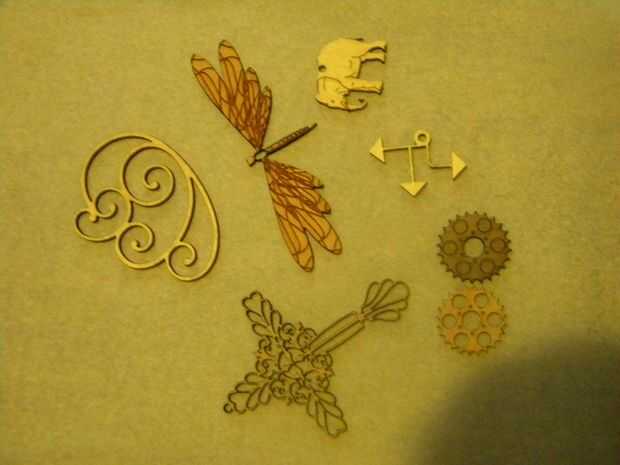 Primero utilicé principalmente fuentes de Corel Draw y prediseñadas para hacer los patrones que quería láser. Después graba al agua fuerte, recorta las formas. Algunas de las piezas son muy pequeñas y frágiles. Las partes que no pueden usar, figura que mi hija puede utilizar en mosaicos o algún otro proyecto de arte.