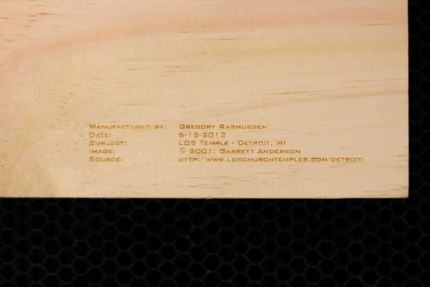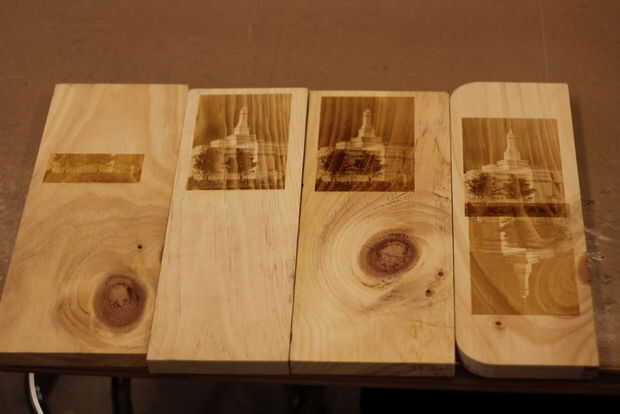Al elegir su imagen, encontrar una con buen contraste. Girar la imagen a escala de grises y probar la parte más importante de la imagen sobre una superficie de material similar. Después de múltiples exámenes y probar diferentes ajustes, la imagen completa se puede imprimir en el grabador del laser.