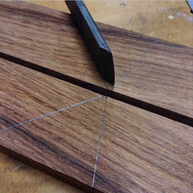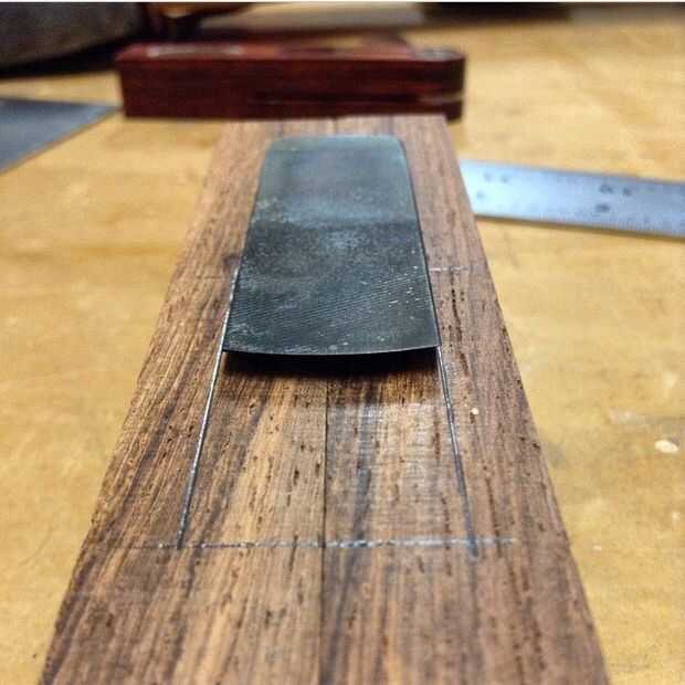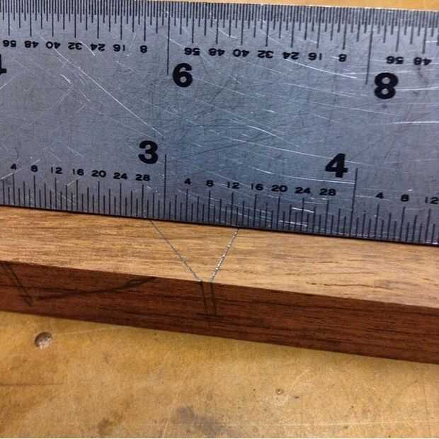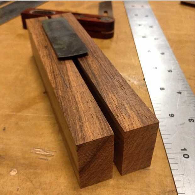 El plano está hecho de dos piezas 5" de largo 5/8" de ancho por 1 1/8" de altura. Estos dos fueron aserrados de una sola pieza para que cuando te pegan otra vez la línea de cola casi desaparece.