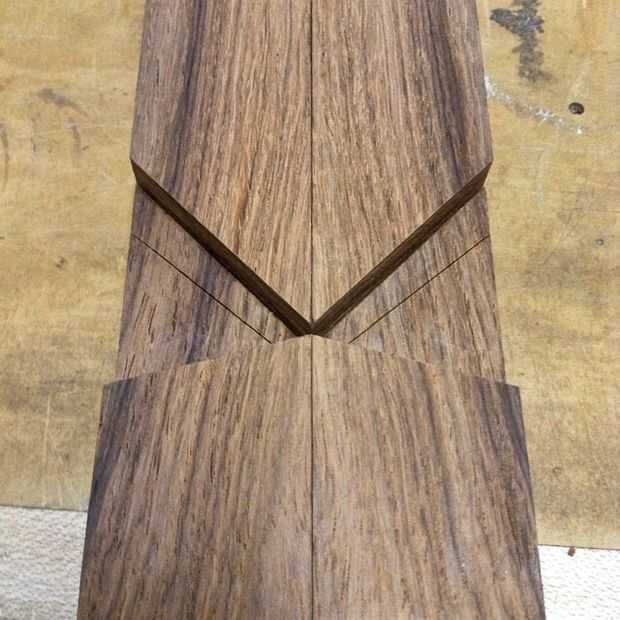 Con esta línea de corte como guía, quite la madera hasta el 3/8" profundidad (donde la cuchilla y la cuña se sentará) con un cuchillo afilado y un cincel. Avance de la línea de corte, las necesidades de madera para ser tallada hacia abajo como una rampa para abrir la cavidad suficiente para que la viruta salir del avión. Me gusta salir a la superficie tallada de una gubia para darle la mano hicieron.