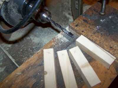 Taladre los orificios de menos de 9/32 pulgadas de diámetro y una profundidad de cerca de 1 5/16 pulgadas. Compruebe para estar seguro de las clavijas Deslice dentro y fuera de sus agujeros libremente y rápidamente por medio de su propio peso. Hacer los agujeros un poco más grande, si es necesario.