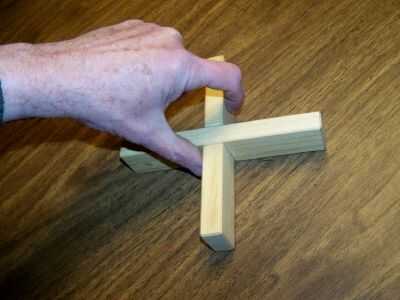 Insinuó la solución en el título de este Instructable.  Coloque el rompecabezas cerrado sobre una superficie plana.  Con su dedo y pulgar, girar el puzzle tan rápidamente como sea posible.  Esto crea una fuerza centrífuga que arroja el pasador hacia afuera desde el centro y libera dos piezas para que uno se puede levantar fácilmente de la otra.