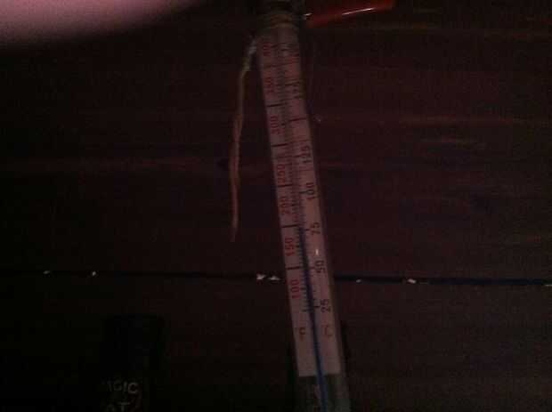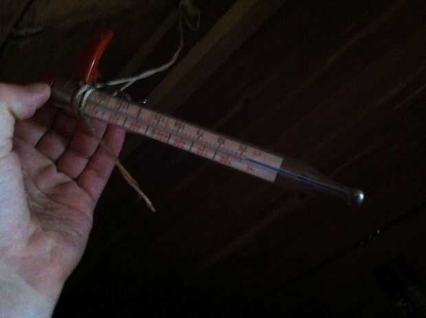 Utilizar un termómetro de cocina para medir la temperatura y que cuelga 6" apagado del techo en la parte superior de la sauna golpeó hoy 175.