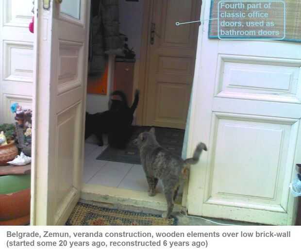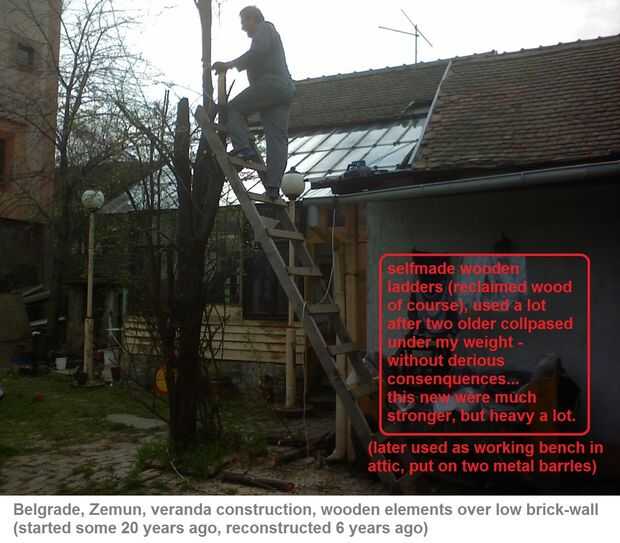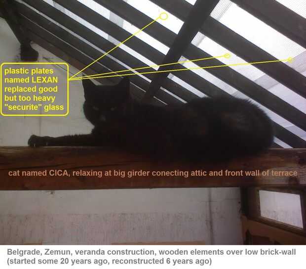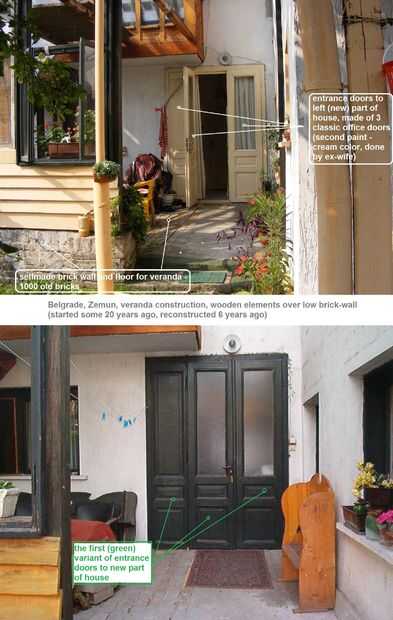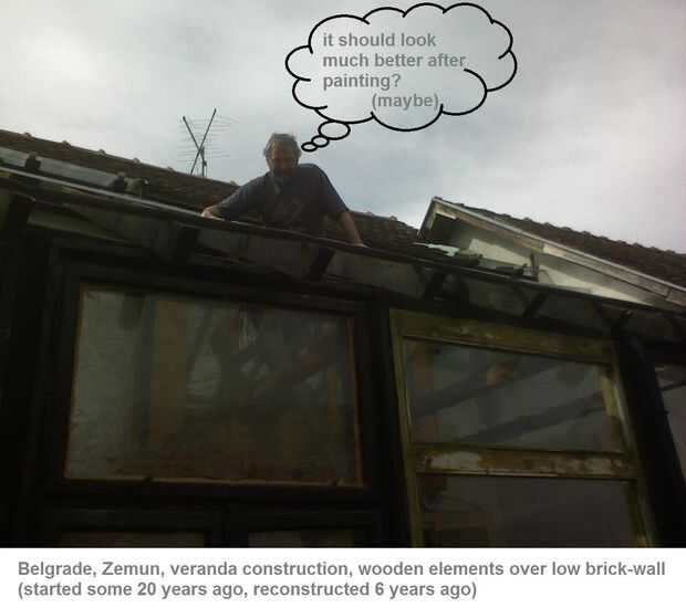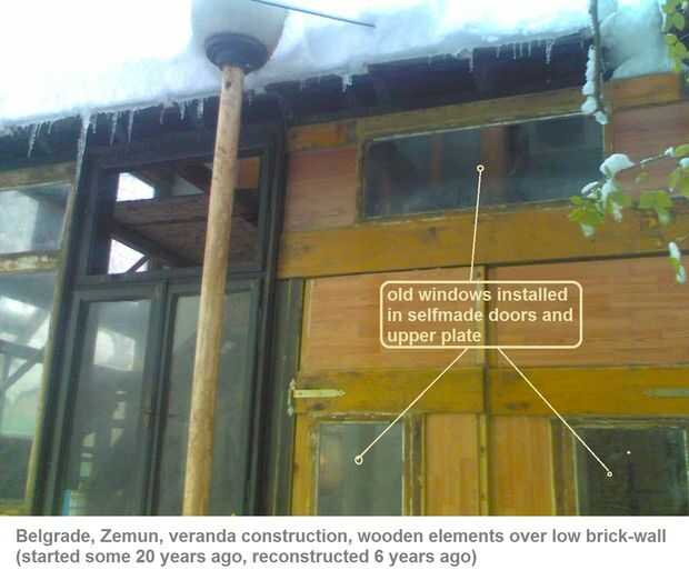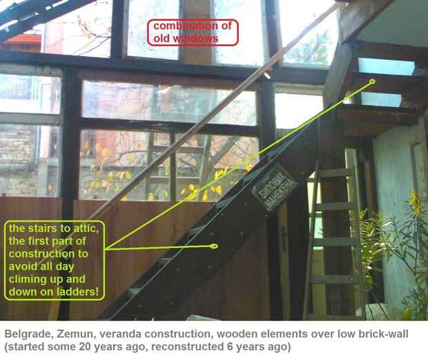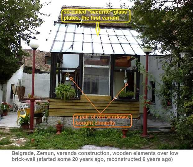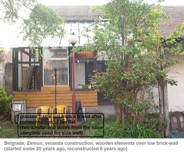 Porque nuestro hijo comenzó a High School secundaria de Zemun (conocido como "gimnazia" en Serbia), decidimos trasladarnos allí, por lo que tuvo el camino más corto a la escuela... Compramos casa pequeña antigua y el mismo año Añadir nueva pequeña parte con planta baja y ático, planeado para ser adaptado para nuestro hijo... Después de mucho de pensar y muchos bosquejos, no se guarda y mantiene aquí en Berna, Suiza – empecé a construcción de porche cerrado, porche, que sería cubierto por placas de cristal (consiguió gratis) y con paredes hechas a sí mismo.