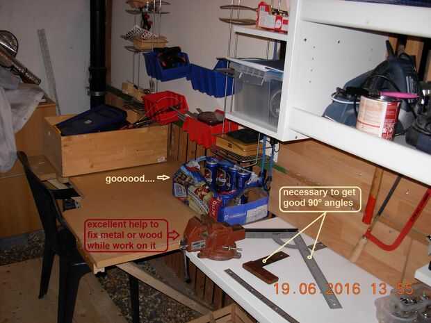 P.S.: Adjunto son fotos de herramientas útiles (algunas minas, algunos tomados de internet) que tuve y utilizado durante el trabajo en mis proyectos y un par de fotos que mis modestos talleres, aquí, en Berna. Por desgracia, alguien rompió en mi casa jardín y tomó la mayoría de herramientas...