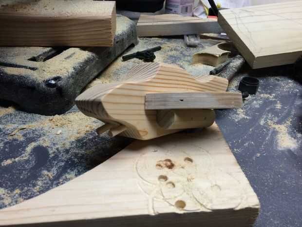 OK... así que el avión era probablemente el más desperdiciador de tiempo pero no demasiado malo. Había aplanado hacia fuera de la espiga y la clavó desde abajo en el ala. Luego ponerlo en el lado del plano y la clavó a través de la espiga para adjuntarlo al aeroplano. Pensé que sería tipo de fresco un pasador a través del cuerpo del plano y coloque las alas de una sola espiga. Haciéndolo así las alas rotarían para toma vertical de y aterrizaje pero me estaba agotando el tiempo así que lo opté por el clavo en el método. La torreta en el carro es prácticamente un taco más grande con dos pequeñas clavijas empujando hacia el lado. Tengo uno también hacia abajo en el camión para permitir que gire. Supongo que hay mejores formas de hacerlo pero que era bastante fácil y no pasó mucho tiempo. La lámina del helicóptero en la parte superior era una dovela más redondeado y luego cortar. Un taco más pequeño había insertado en la parte superior del helicóptero y luego la cuchilla luego la tapa. Gira muy bien. He añadido dos espigas pequeñas en la parte delantera del avión armas pero lo que un dolor y hasta el trailer. No recomiendo. Como con el recolector de juguete tienes que poner poco clavijas en el remolque para evitar las cosas resbalen.