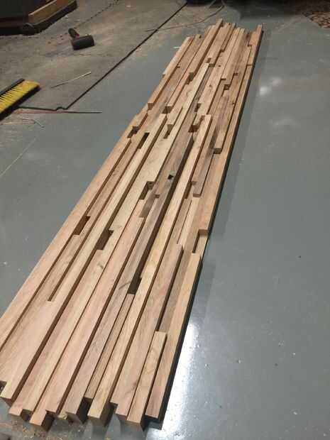 A primera vista parece que las juntas se cortan al azar anchos y longitudes al azar y sólo se lanzan juntos. En una mirada más cercana hay un patrón mucho más detallado y necesita mucha atención a pagar que resulte en una pieza mira un poco al azar.