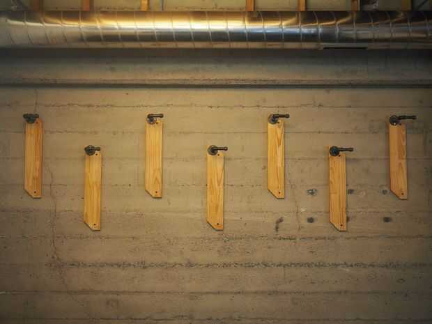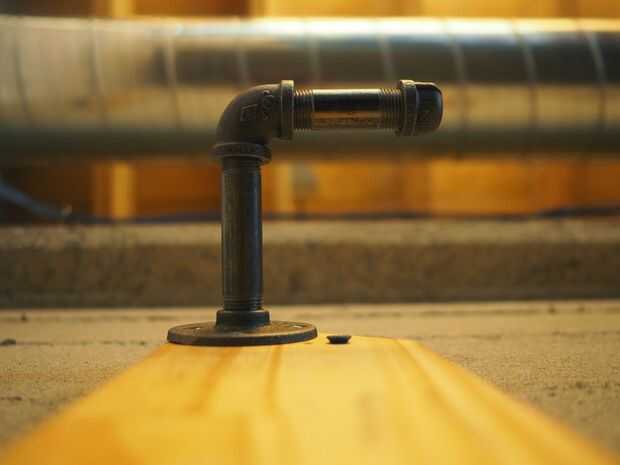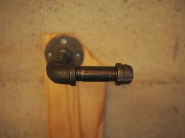 Después de que la madera se une a la pared, tornillos en las bridas (4 tornillos), luego gire en los codos de la tubería. Al final, te vas poniendo su espalda en él para obtener la pipa apuntando el camino correcto, pero esto significa que las motos no se moverlos a todos una vez que están colgando en ellos.