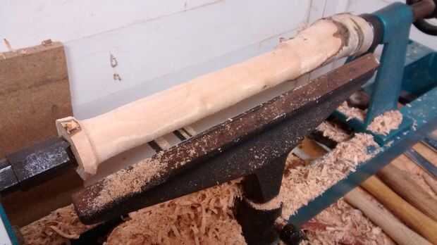 Una vez que tengas tu rama cortado a la longitud que usted necesita y bien montado en su torno entonces necesita bajar la rama así su perfectamente redonda. Usé una gubia desbastar para hacer esto. Sólo aspiran a hacer la rama de un cilindro perfecto en el momento y no tiene que preocuparse sobre el grueso aún.