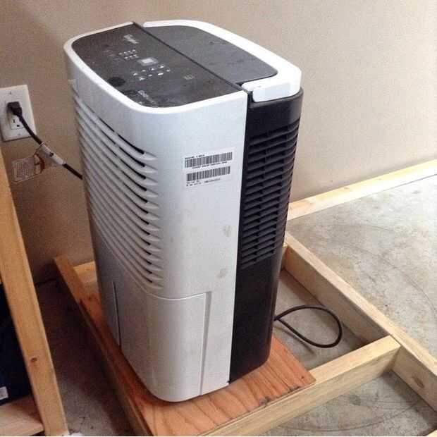 El ventilador hace circular el aire para igualar el secado. He diseñado mina para tirar aire desde abajo y luego soplar el aire por un tubo de plástico hasta el otro extremo. Esta manera que sé que no hay aire estancado o humedad atrapada en el horno. Este es 20 pies o 6 metros. El deshumidificador es atrapado dentro del horno y se establece en máximo. Este modelo tiene una manguera que salga del horno y llena un cubo.