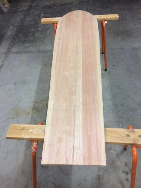 El eje de balancín también tendrá que ser en forma similar a los rieles. Como alaia no tiene poco o ningún eje de balancín en la cuesta del carril en la nariz puede simplemente aumentar a cuenta para esto.