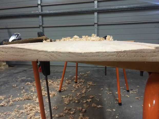 Mediante un conector plano o plano de bloque los rieles pueden ser manipulados lentamente hasta más de una curva geométrica carril. Dependiendo de la madera, puede utilizarse papel de lija para redondear los bordes más suavemente una vez que los bordes están cerca de lo que usted quiere.