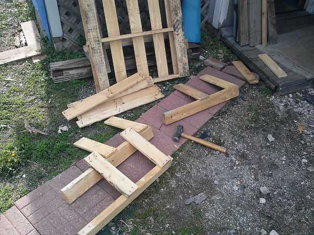Tomar los tres 2x4s y les establecen. Estas serán las patas de la mesa.