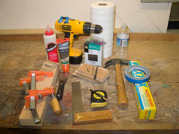 Usaba una tronzadora, pero una sierra de mano y un poco de grasa del codo también hará el trabajo. Una sierra de vaivén puede trabajar si se puede hacer un corte recto; Nunca puedo parece que hacen un gran trabajo con el mío. Más abrazaderas mejor. Usé alambre clavos de 1 1/2", pero clavos de acabado 3d o 4 d son buenos. Me