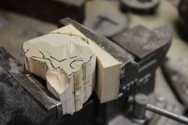 Estoy usando un vicio de metales, que no es ideal, pero también estoy usando espinillas en el vicio para el trabajo está uniformemente alrededor de una curva y no aplastar las fibras, como podría ser el caso con un tornillo de banco de trabajo de Temple.