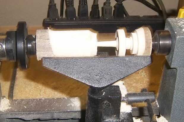 Utilizar el escoplo para cortar el tallo para el diámetro que desee. Use la gubia del huso y el cincel para cortar el punto y redondo sobre la espira.