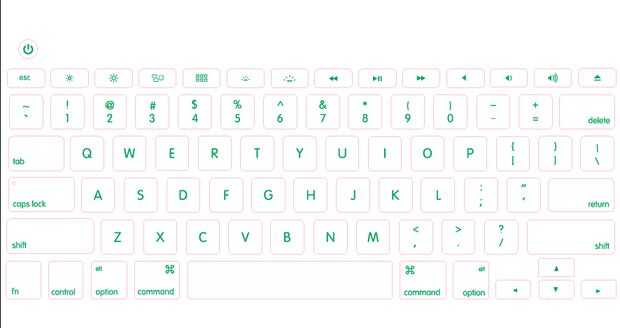 Ahora que tengo mis medidas, tiempo para hacer una plantilla de vector en illustrator. Puede utilizar corel para esto; Me siento más cómodo con el ilustrador. Importante código de color de esta plantilla, todas las líneas que se cortan a través del material debe ser descrita en un color, elegí rojo y todos los objetos que deben ser grabados deberán ser rellenados con otro color, yo elegí verde. Con la herramienta Rectángulo redondeado, crear rectángulos de la medida 11 de diferentes dimensiones en los pasos anteriores. Puse el radio a 0,075". Luego escaneé mi cubierta de teclado de goma macbook para darme un diseño completo del teclado. Colocar los rectángulos por consiguiente encima de la imagen que puse en illustrator. Utilicé las herramientas de alineación para asegurarse de que las llaves fueron uniformemente espaciadas y centrado en el entre otros. ADVERTENCIA: esto es clase de engaño. Este método es rápido y fácil, pero no muy preciso. Si se va a colocar todas las teclas del macbook a la vez, este método probablemente no funcionaría porque el espacio entre ellos de las llaves no serán exactas. Para solucionar esto, medir el espacio entre las teclas y distribuir las claves en la plantilla para ese espacio. Todavía utilizaría la imagen escaneada como referencia, pero no como única guía. Mi plantilla no es perfecto y lo hizo colocar individualmente cada tecla en mi macbook.