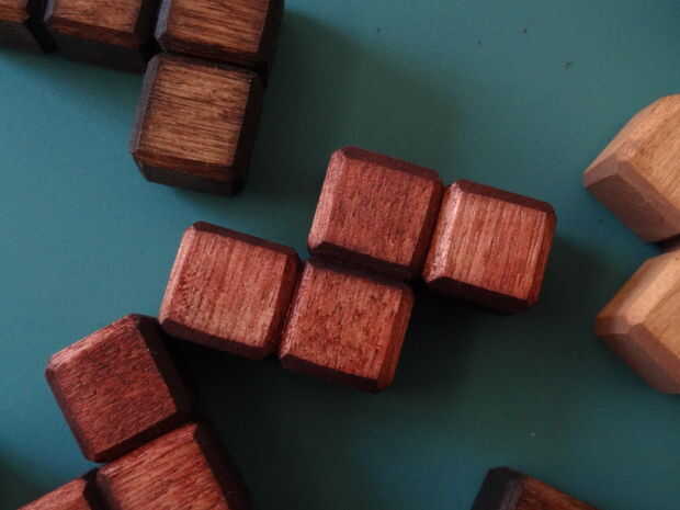 después de ordenar alrededor de 3000 cubos de madera para otro proyecto, me encontré con una bolsa de "restos" que eran inadecuados porque algunos rincones estaban un poco torcidas. En lugar de simplemente tirando hacia fuera de los bloques de repuesto, he encontrado una manera poco útil para volver a utilizarlos.