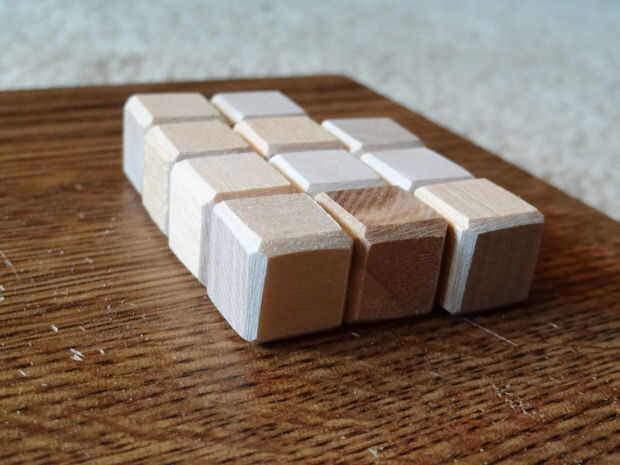 Una vez que biselar los bordes, es necesario decidir si los cubos deben lijarse con un papel de grano más fino, o si te gustan lo que son. Decidí dejar lo que estaban.