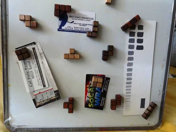 un miembro de la familia lanzó fuera un reto para un proyecto educativo que tenía que entregar. Su idea era crear un puzzle con bloques de Tetris de madera. Necesidad de una excusa para pasar más tiempo en el garaje, conjunto sobre determinar si era