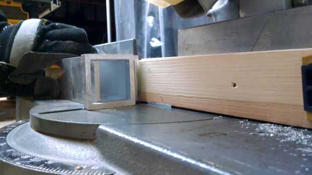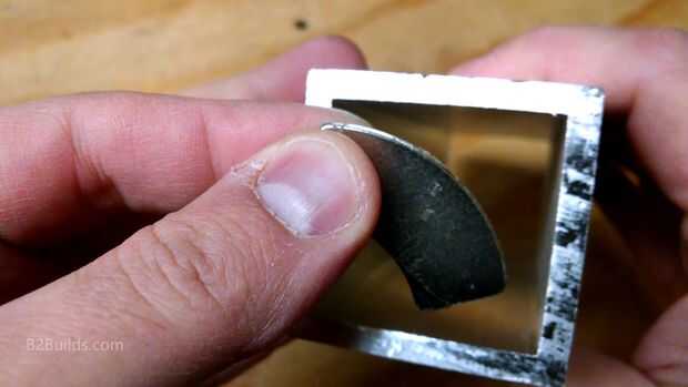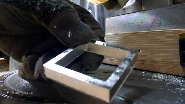 Nuestro otro imán de disco duro se utilizará en una Asamblea más grande. Cogió un trozo de tubo cuadrado de 2" de aluminio de un proveedor local de metal y cortó un pedazo de mi sierra de inglete para el borde de nuestro imán más grande.